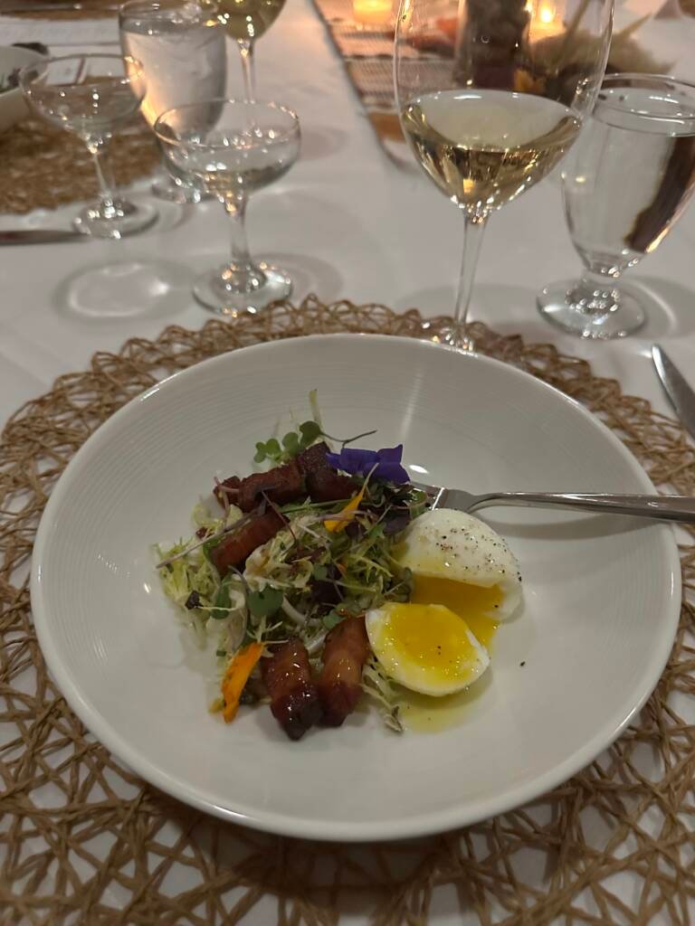 The first course was a Salade Lyonnaise paired with Fournier Sancerre Silex.