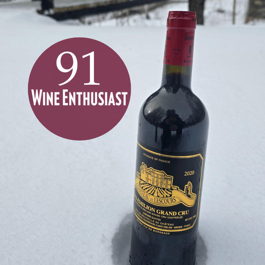Lescours St Emilion 2020 gets 91 Pts Wine Enthusiast